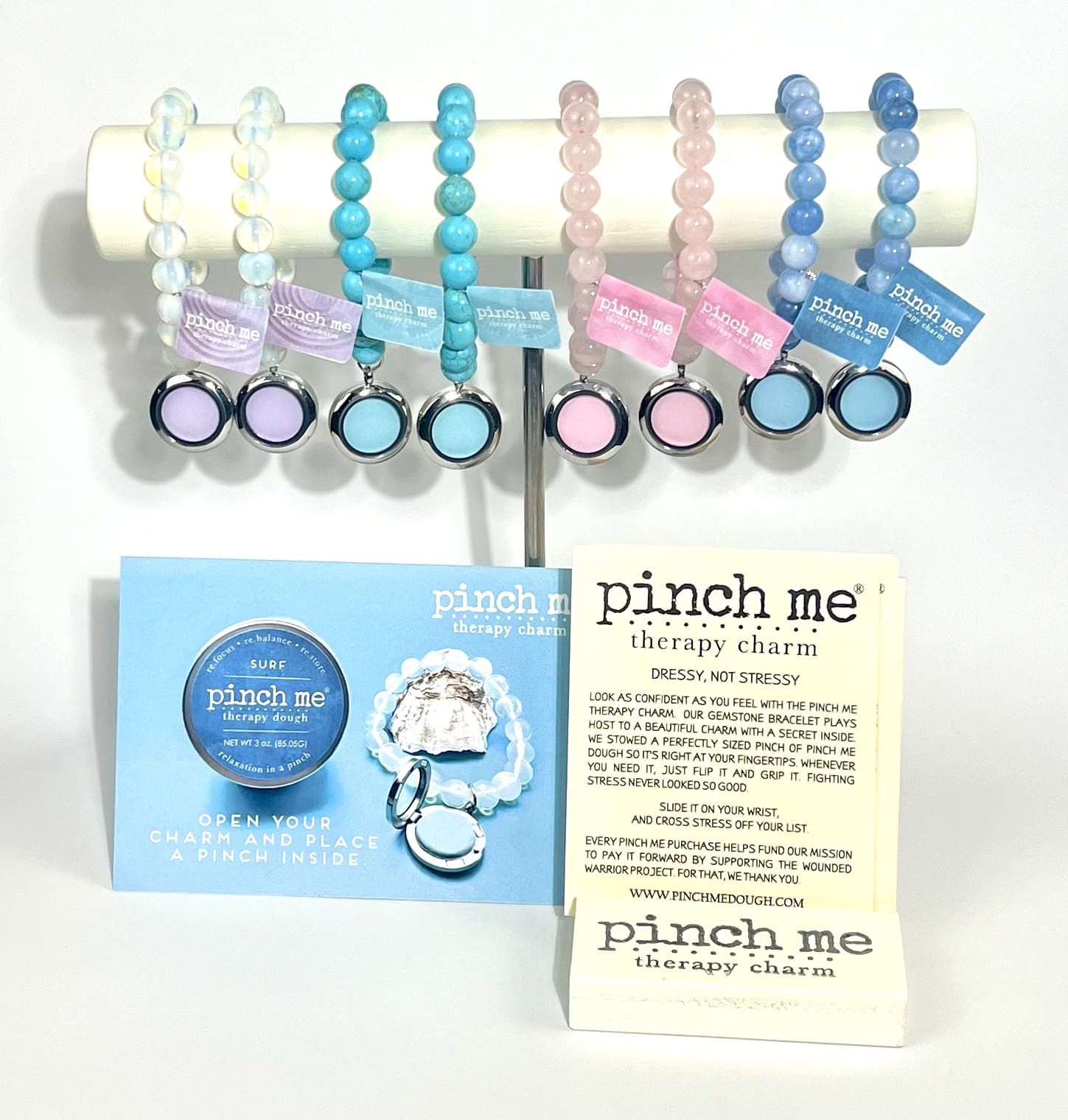 Custom wood display designed specifically for the Pinch Me Therapy Dough Charm Bracelets. (Holds 12 Clip On Lockets, sold separatly) Partial offset offered.