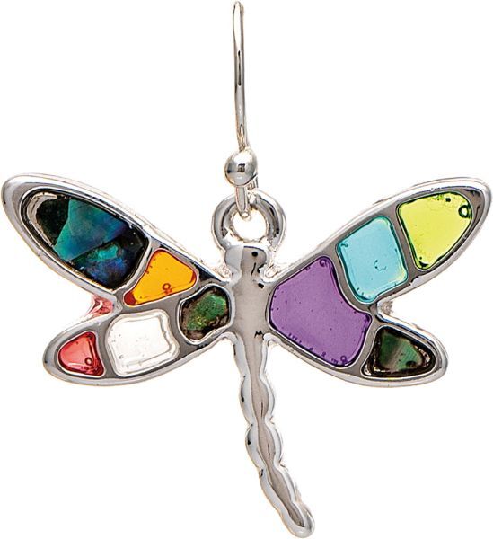 Silver Multicolored Epoxy & Abalone Shell Dragonfly Earring. Product materials may include zinc, brass and steel with silver and rhodium plating. Lead safe. Ear wires made of stainless steel with silver or gold plating.