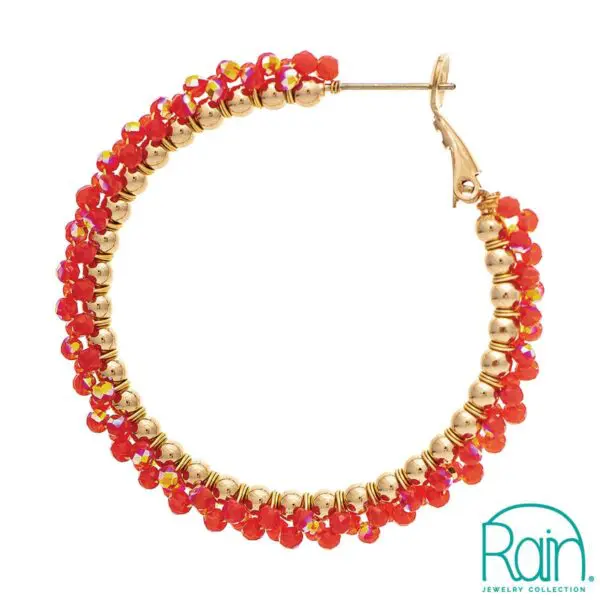 EARRING/Coral Bead Edge Hoop