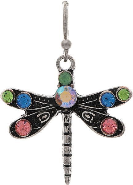 Silver Multicolor Crystal Dragonfly Earring. Product materials may include zinc, brass and steel with silver and rhodium plating. Lead safe. Ear wires made of stainless steel with silver or gold plating.