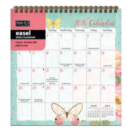This calendar will add a pop of color and style to your workspace. Stay on top of your schedule in style with the 12-month format (January – December 2026). The built-in easel ensures easy viewing and showcases the full-color designs beautifully.