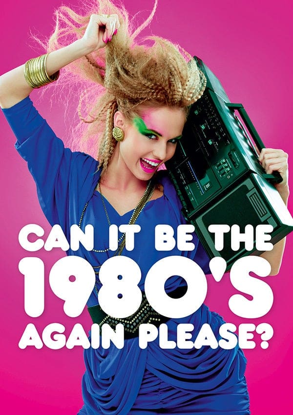 This greeting card measures 5″ x 7″. INSIDE: „because it was like totally, the most rad era of all time! Printed in Canada