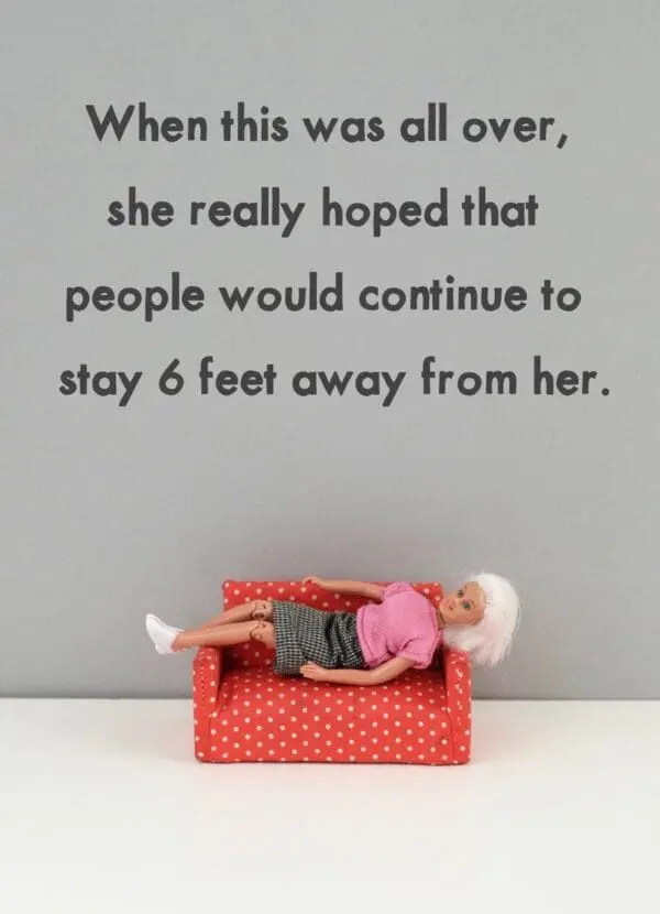 Greeting card measures 5 x 7″ and includes colourful envelope. INSIDE: Here’s to living your best life, self-isolation and all! Printed in Canada
