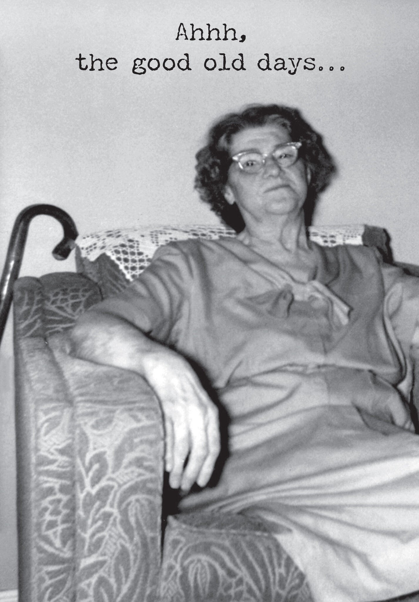 A humorous 4.75″ x 7″ greeting card lending a vintage photograph to coordinate with its outside. INSIDE: When A New Hip Joint Meant A Cool Place To Go. Printed in Canada.