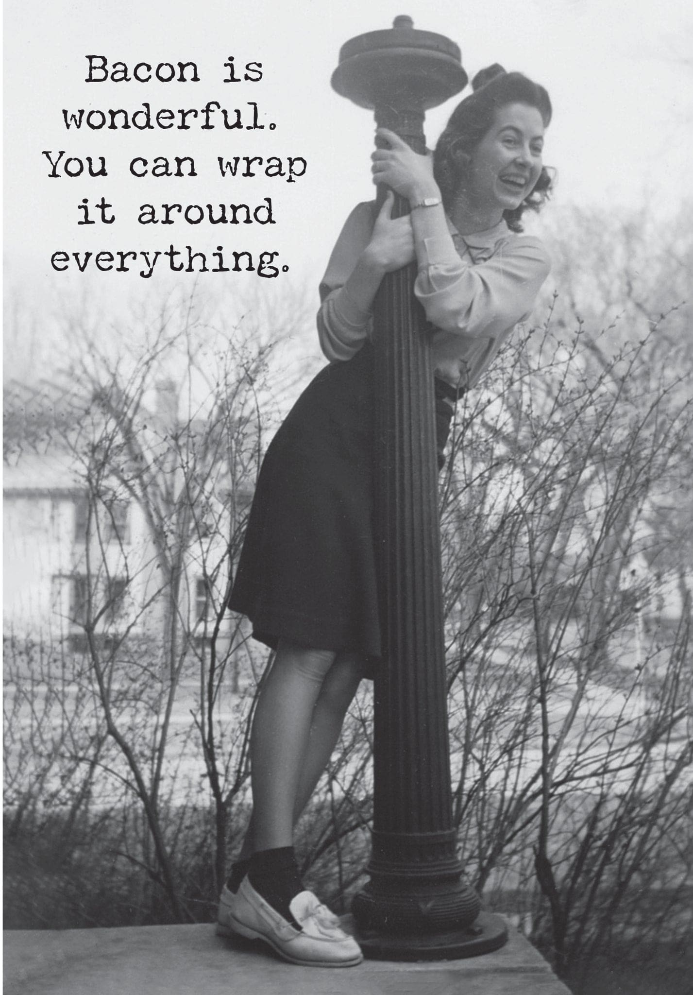 A humorous 4.75″ x 7″ greeting card lending a vintage photograph to coordinate with its outside. INSIDE: It’s the duct tape of food. Printed in Canada.