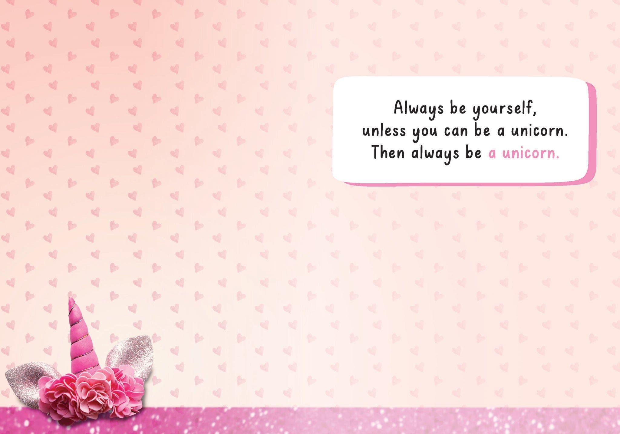 Each card measures 5″x7″ (13cmx18cm) and is printed in full colour on coated paper, comes with a coordinating colour envelope. Printed in Canada. Inside greeting: Always be yourself, unless you can be a unicorn. Then always be a unicorn.
