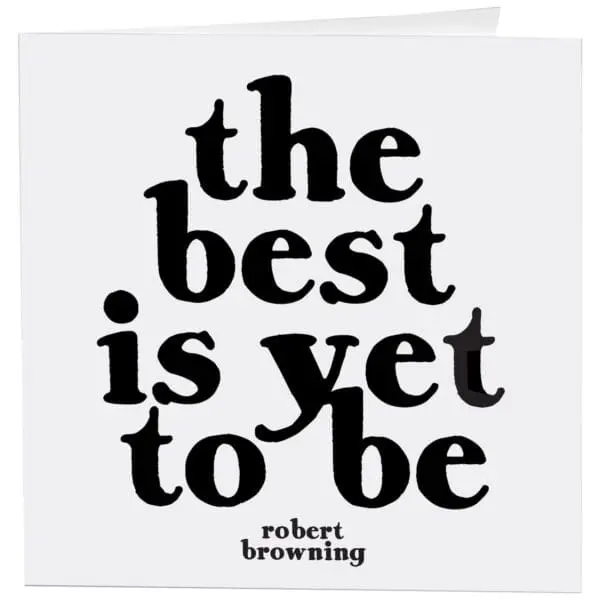 5″ square greeting card. Printed in the USA on recycled paper. Inside: the best is yet to be!