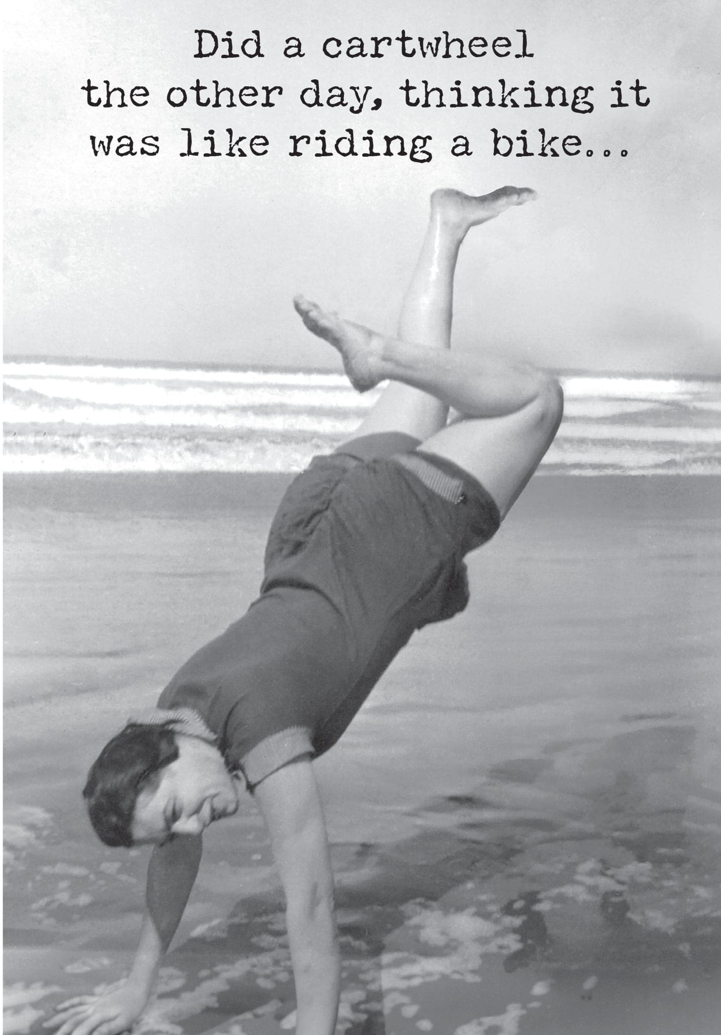 A humorous 4.75″ x 7″ greeting card lending a vintage photograph to coordinate with its outside. INSIDE: It’s not. Printed in Canada.
