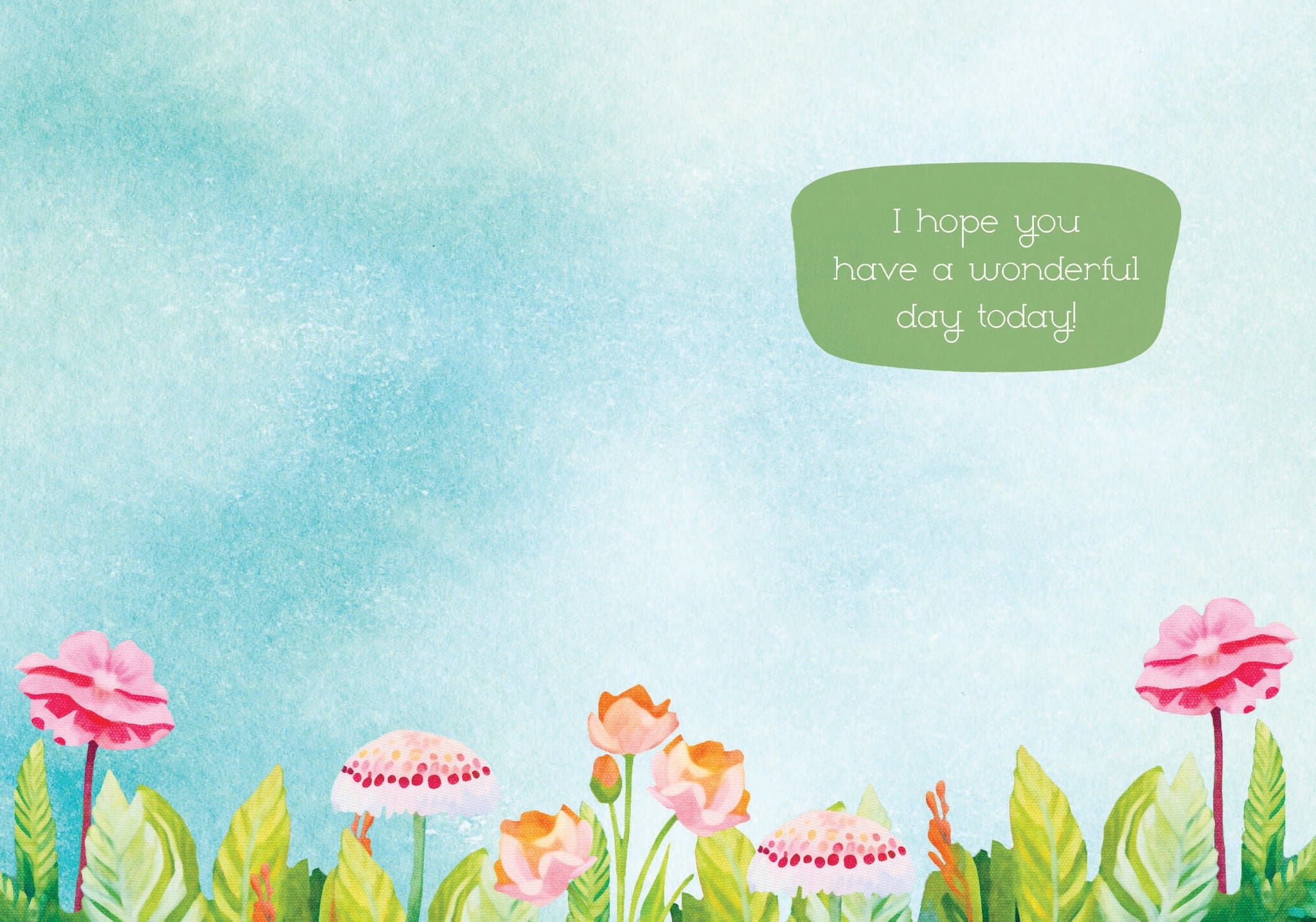 Each card measures 5″x7″ (13cmx18cm) and is printed in full colour on linen paper, comes with a coordinating colour envelope. Printed in Canada. INSIDE: I hope you have a wonderful day today!