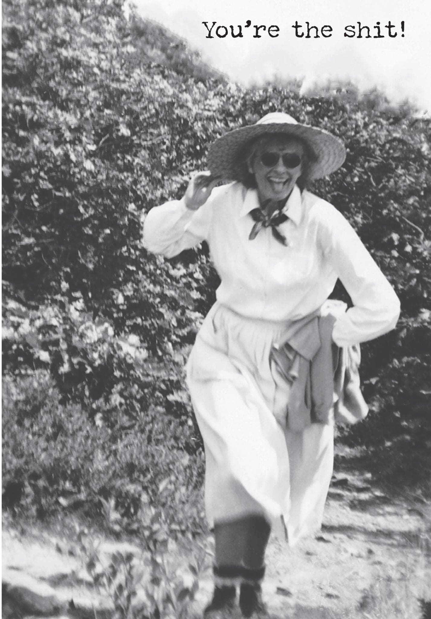 A humorous 4.75″ x 7″ greeting card lending a vintage photograph to coordinate with its outside. INSIDE: I’m not sure how that became a compliment…but there you go! Printed in Canada.