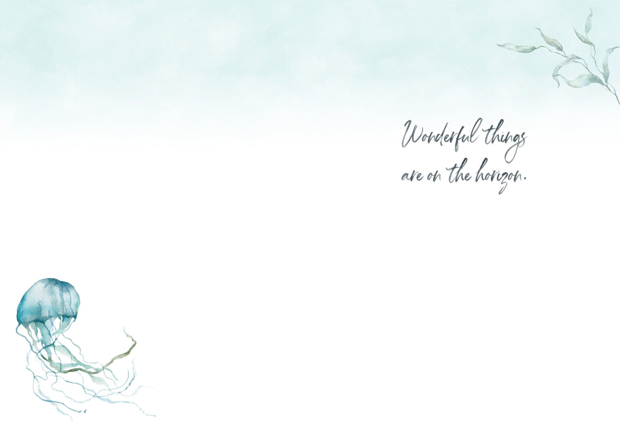 Full size card measuring 5×7″ is printed in Canada with full colour on the interior & exterior. Each card includes an envelope and wrapped in cellophane. INSIDE: Wonderful things are on the horizon.