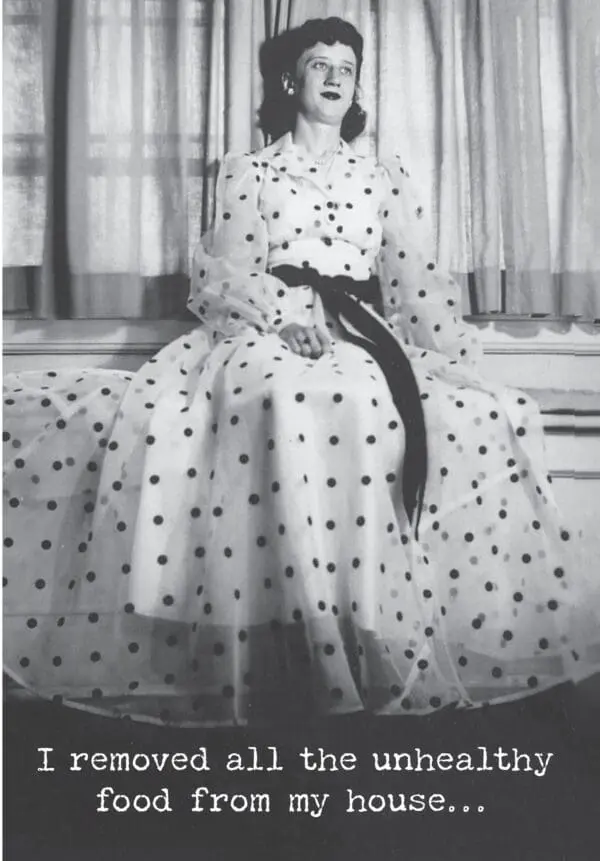 A humorous 4.75″ x 7″ greeting card lending a vintage photograph to coordinate with its outside. INSIDE: It was delicious. Printed in Canada.