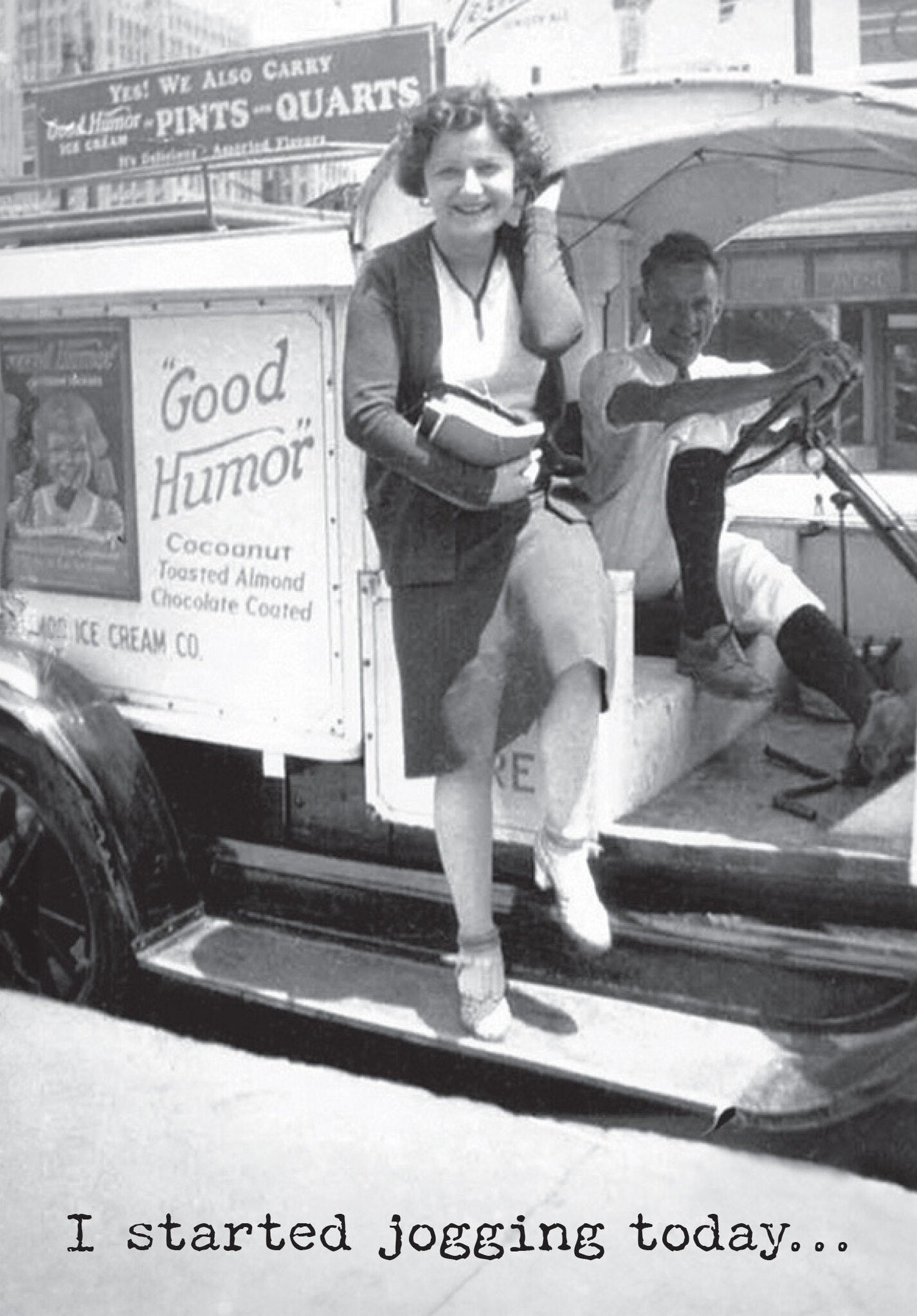 A humorous 4.75″ x 7″ greeting card lending a vintage photograph to coordinate with its outside. INSIDE: I Didn’t Want To, But The Ice Cream Truck Wouldn’t Stop! Printed in Canada.