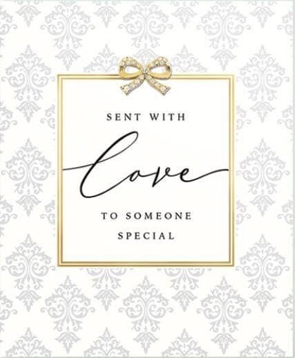 Mad Dots Cards. This 5.2″ x 6.3″ greeting card is printed on cardstock, features gold foil details and is embellished with a diamante jewel. Cellophane wrapped with a luxurious gold envelope. Made in England. INSIDE: Blank