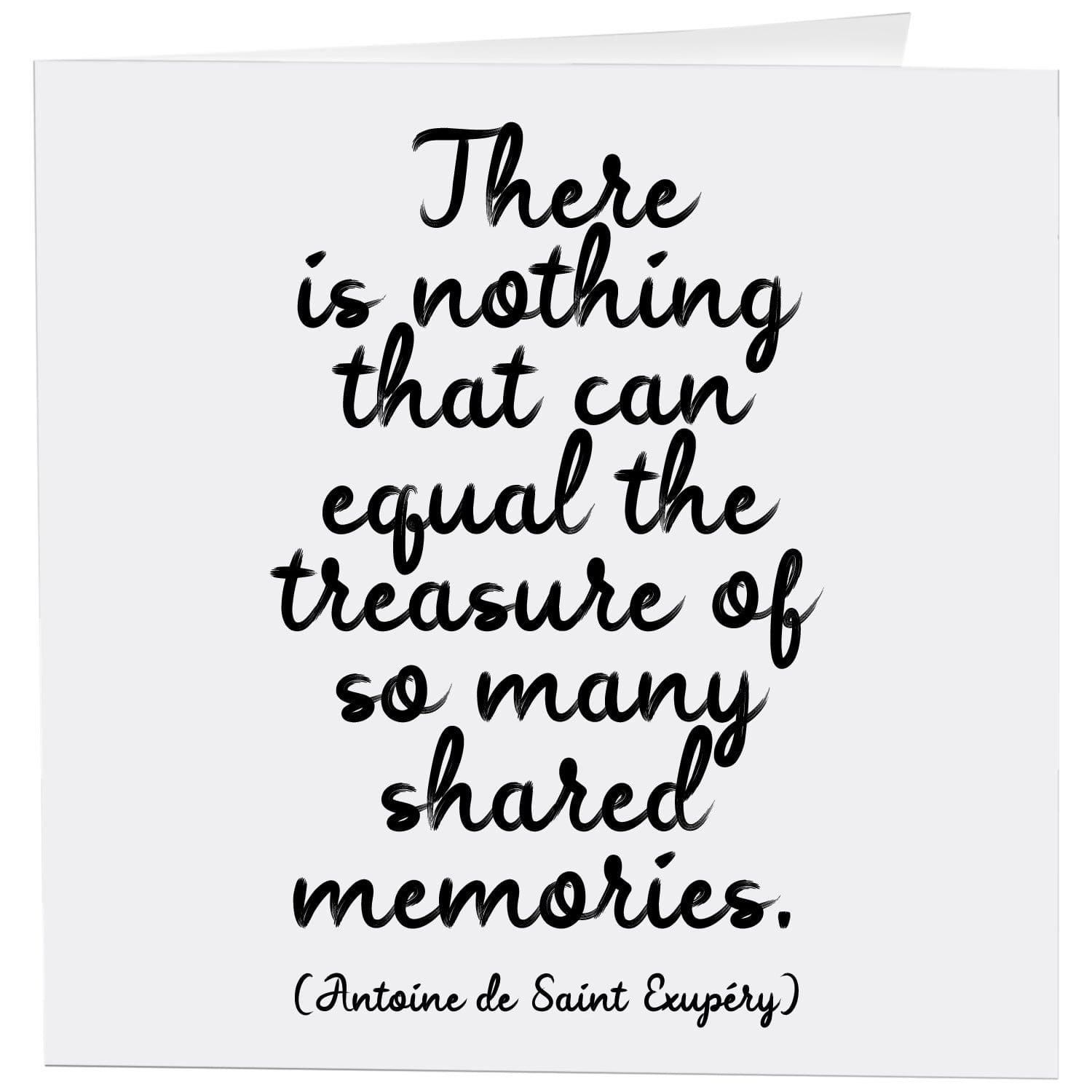 5″ square greeting card. Printed in the USA on recycled paper. Inside: there is nothing that can equal the treasure of so many shared memories. Printed in Canada