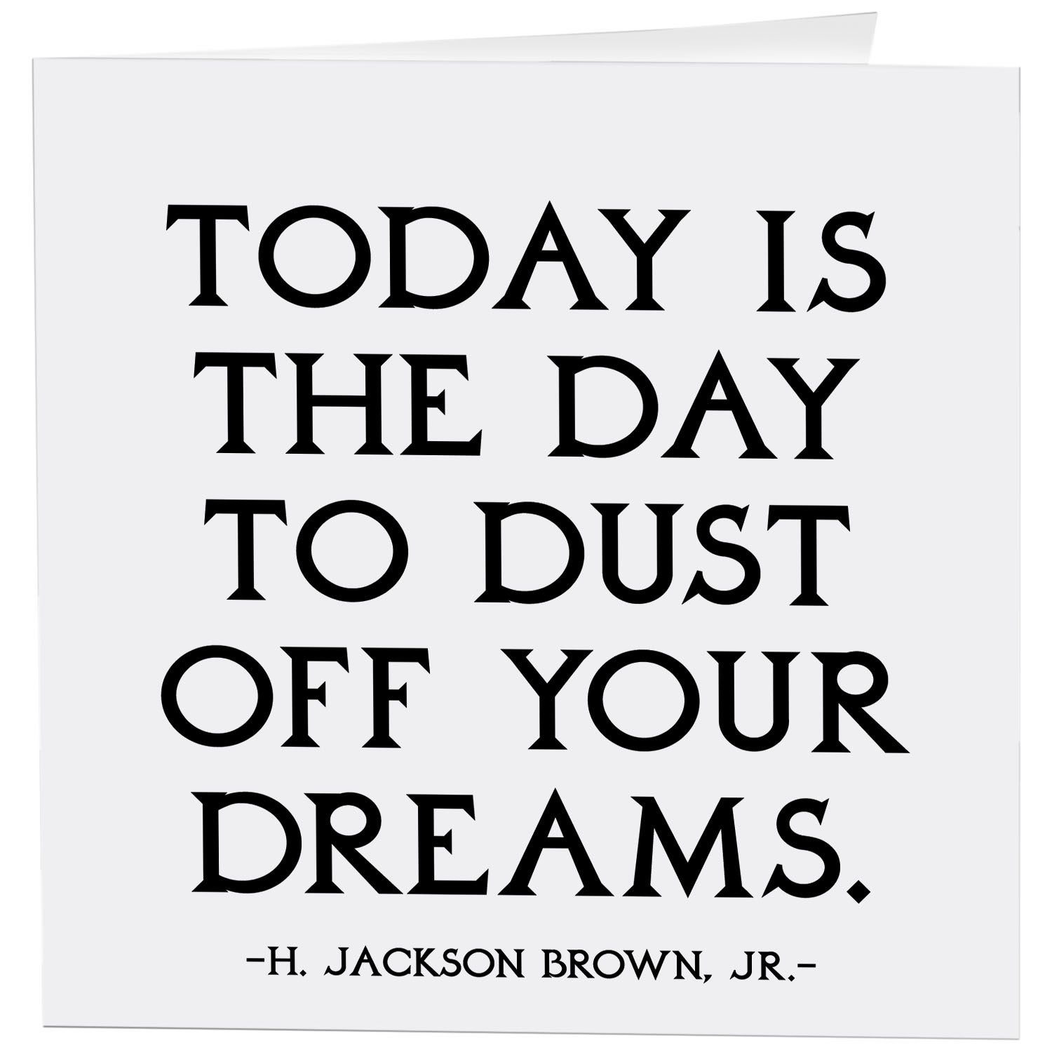 5″ square greeting card. Printed in the USA on recycled paper. Inside: today is the day to dust off your dreams. Printed in Canada