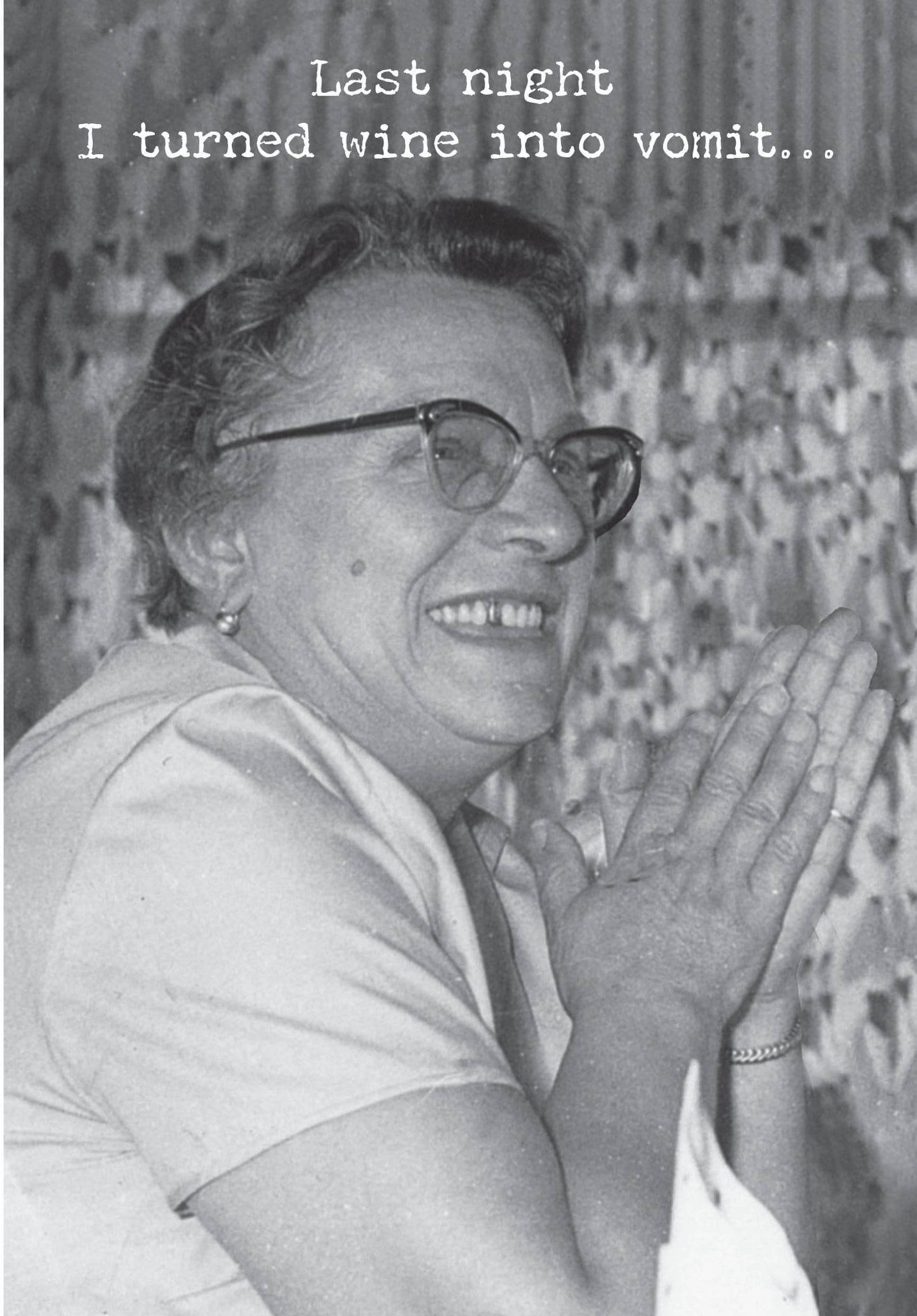 A humorous 4.75″ x 7″ greeting card lending a vintage photograph to coordinate with its outside. INSIDE: your move, Jesus. Printed in Canada.