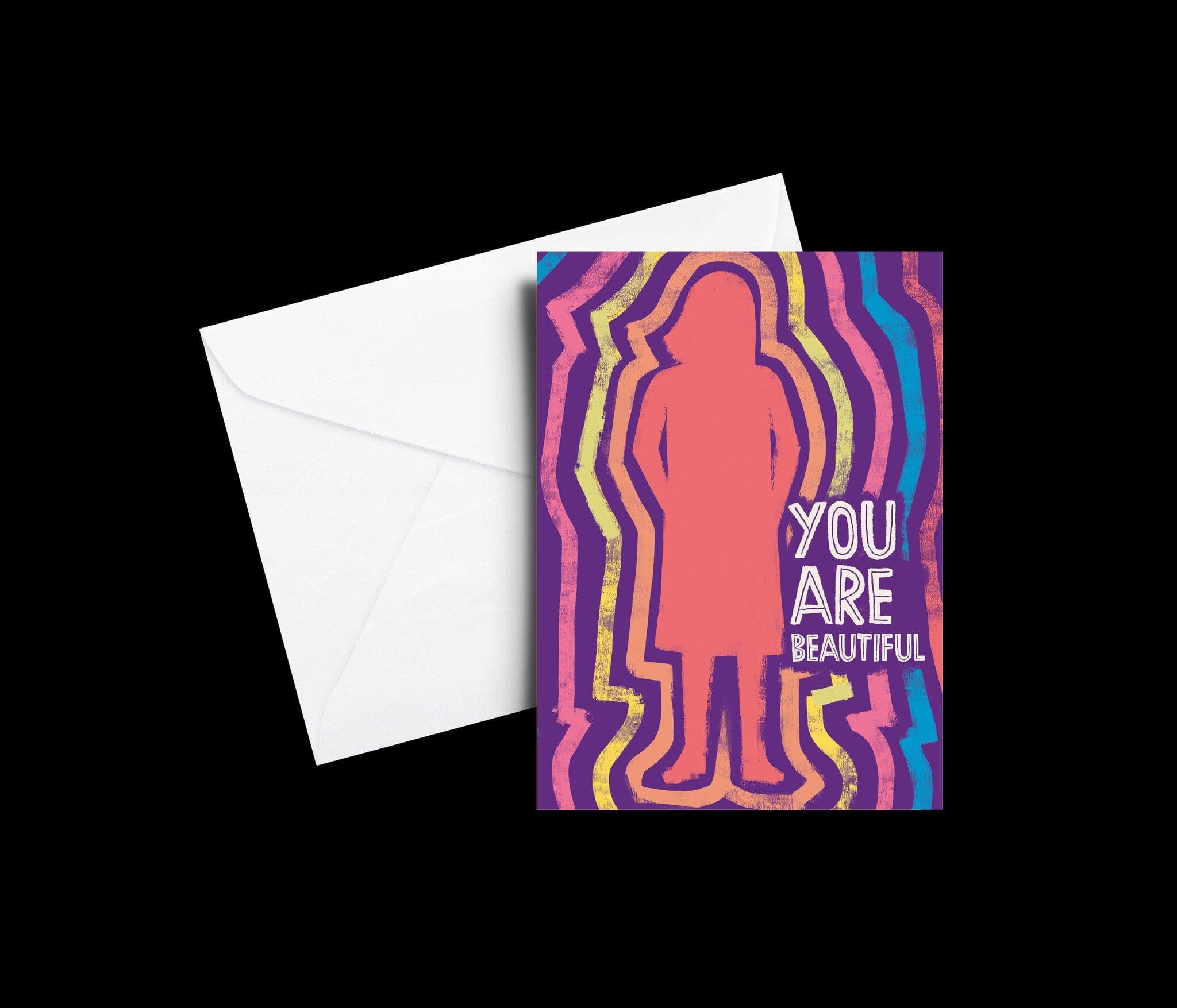 A2 greeting card measures 4.25″ x 5.5″. Includes envelope. INSIDE: Blank. Printed in Canada.