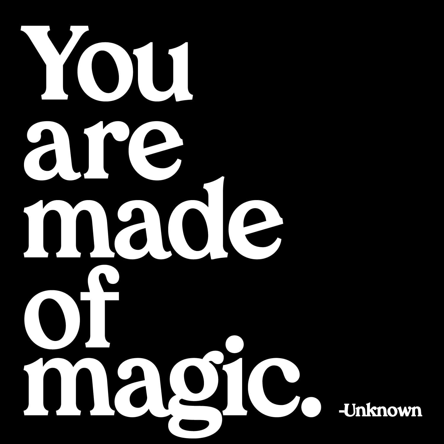 5″ square greeting cards. Printed in the USA on recycled paper. You are made of magic. Printed in Canada