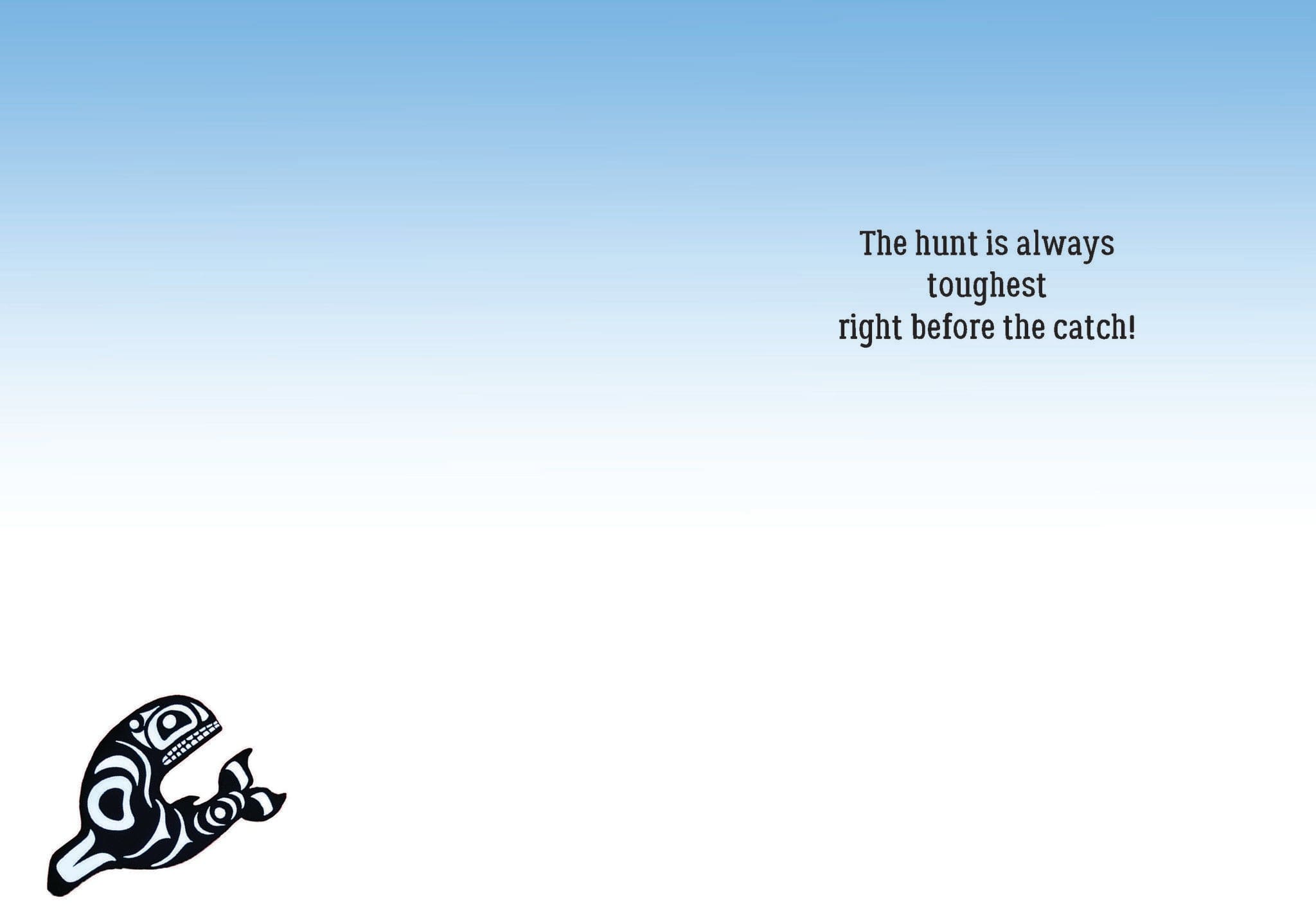 Each card measures 5″x7″ (13cmx18cm) and is printed in full colour on linen paper, comes with a coordinating colour envelope. Printed in Canada. Inside greeting: The hunt is always toughest right before the catch!