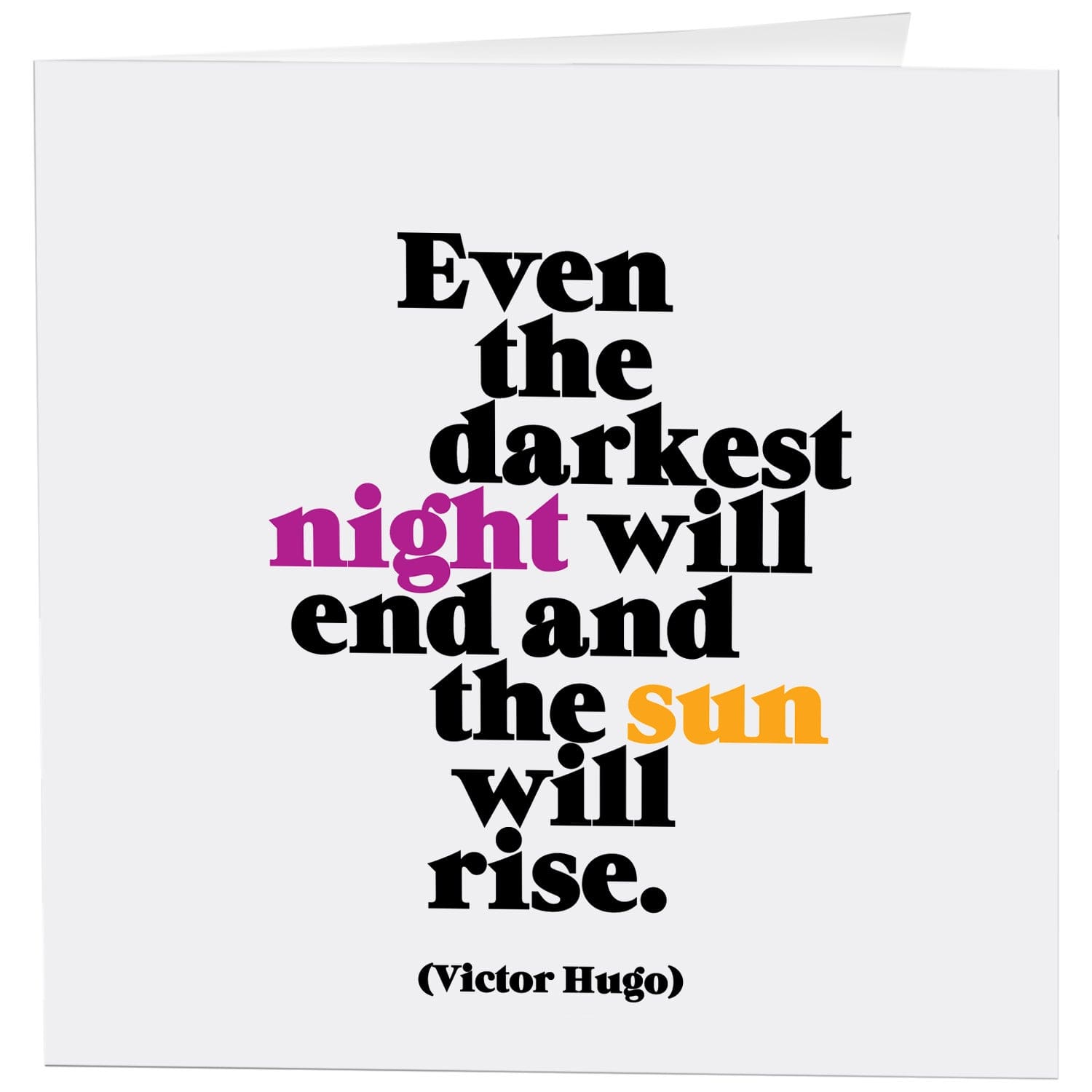 5″ square greeting card. Printed in Canada on recycled paper. Inside: even the darkest night will end and the sun will rise