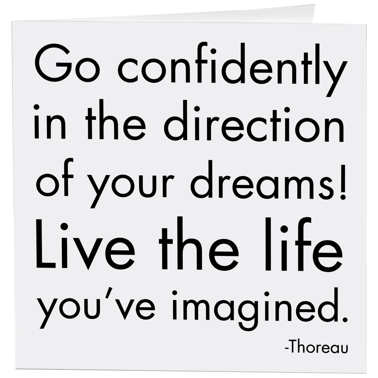 5″ square greeting card. Printed in the USA on recycled paper. Inside: go confidently in the direction of your dreams! live the life you’ve imagined. Printed in Canada