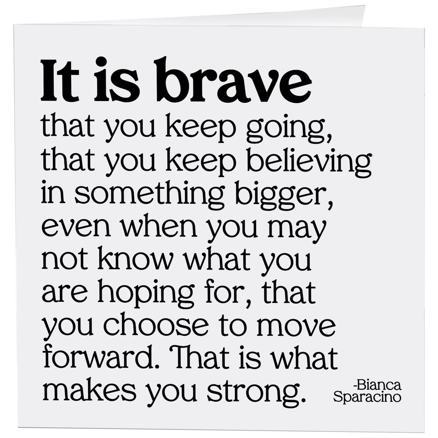 5″ square greeting cards. Printed in the USA on recycled paper. INSIDE: it is brave. that you keep going, that you keep believing in something bigger, even when you may not know what you are hoping for… Printed in Canada