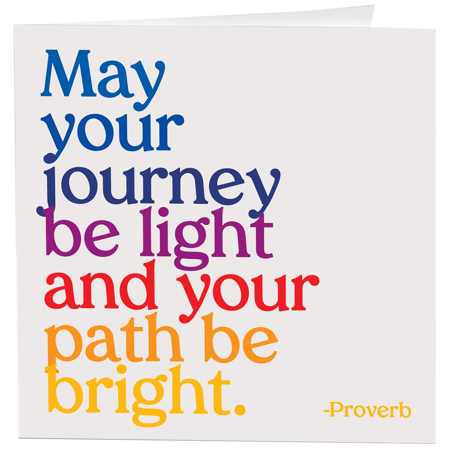 5″ square greeting card. Printed in Canada on recycled paper. Inside: may your journey be light and your path be bright.