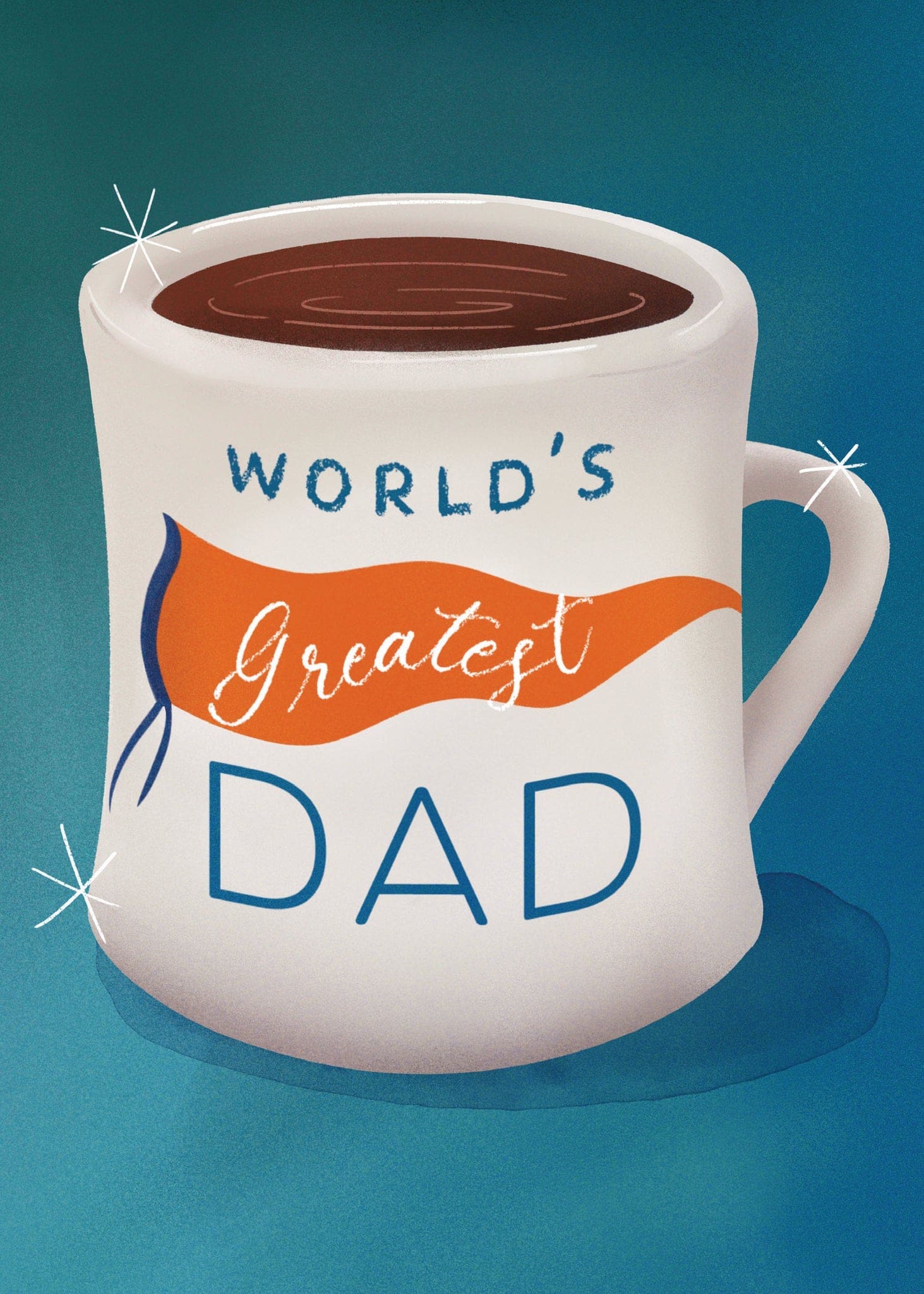Measures 5″x7″ and is printed in full colour on linen paper, comes with a coordinating colour envelope. Printed in Canada. INSIDE: Here’s to celebrating the amazing dad you are. Happy Father’s Day