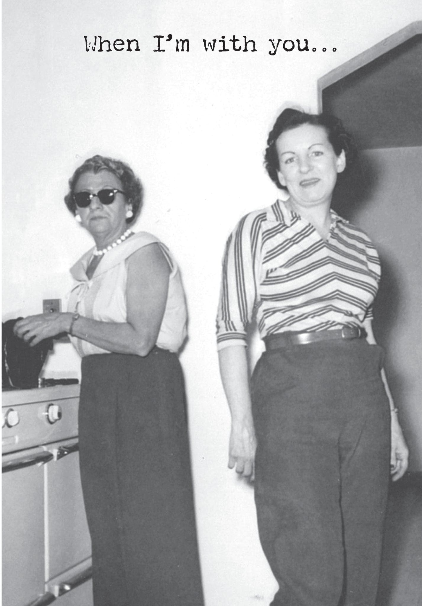 A humorous 4.75″ x 7″ greeting card lending a vintage photograph to coordinate with its outside. INSIDE: I don’t have to pretend to be a nice person. That shit’s exhausting. Printed in Canada.
