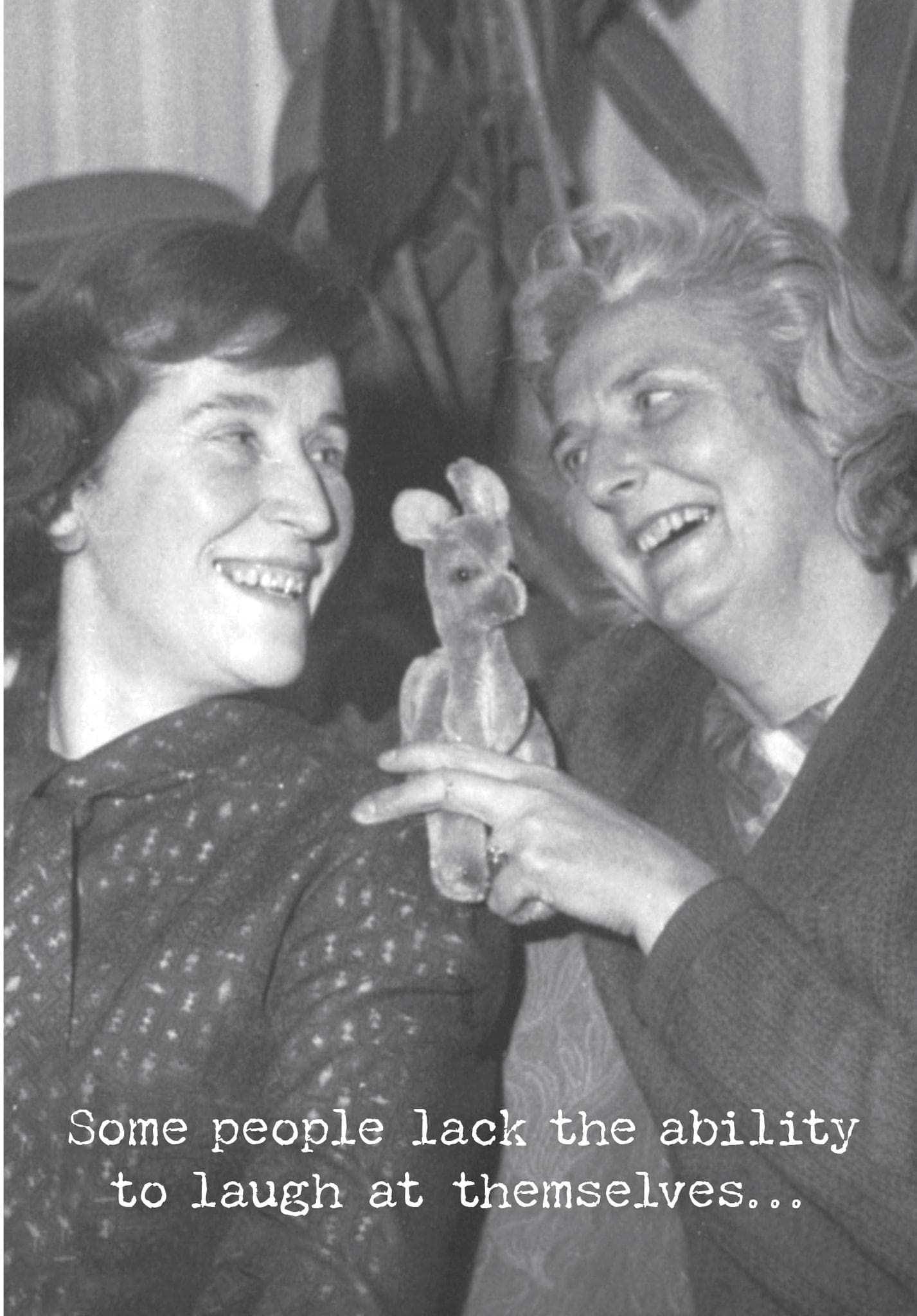A humorous 4.75″ x 7″ greeting card lending a vintage photograph to coordinate with its outside. INSIDE: that’s where we come in. Printed in Canada.