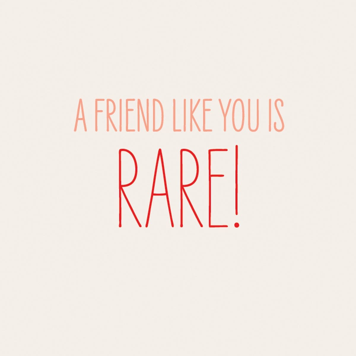 This 4.75″ x 6.62″ greeting card features gold & holographic foil, embossing, and is paired with a colour-coordinating envelope. INSIDE: A friend like you is rare!