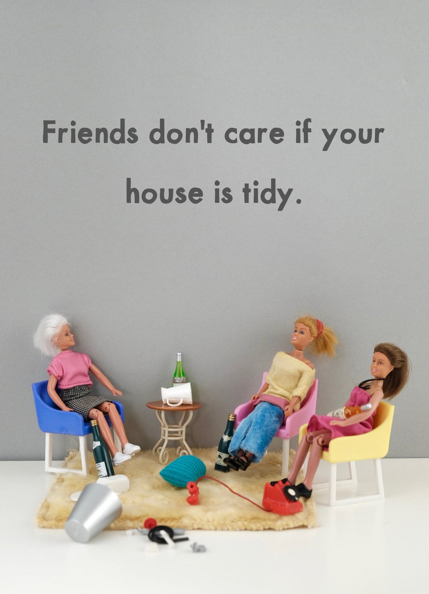 Greeting card measures 5 x 7″ and includes colourful envelope. INSIDE: Friends just care that you have wine. Printed in Canada