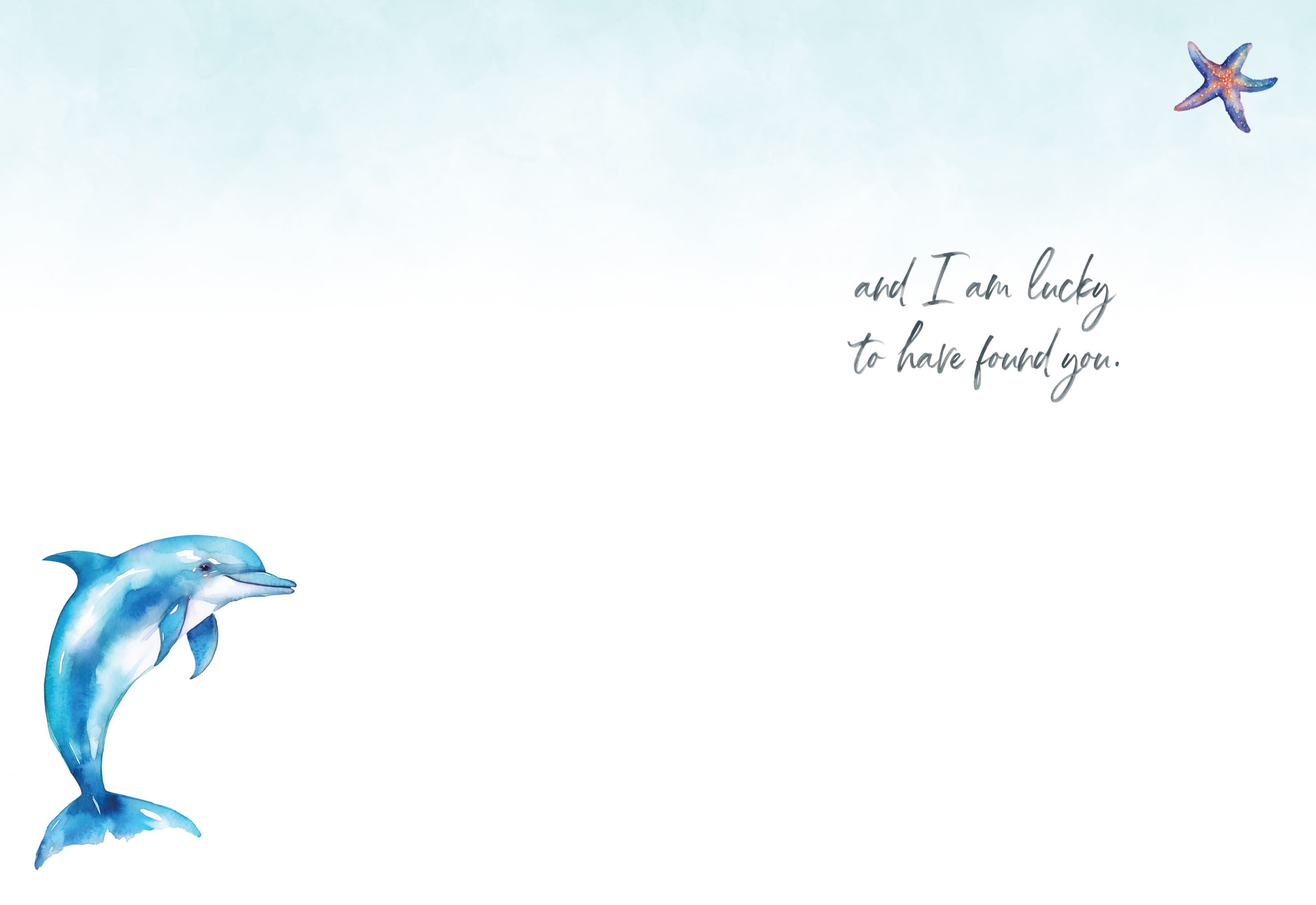 Full size card measuring 5×7″ is printed in Canada with full colour on the interior & exterior. Each card includes an envelope and wrapped in cellophane. INSIDE: and I am lucky to have found you.
