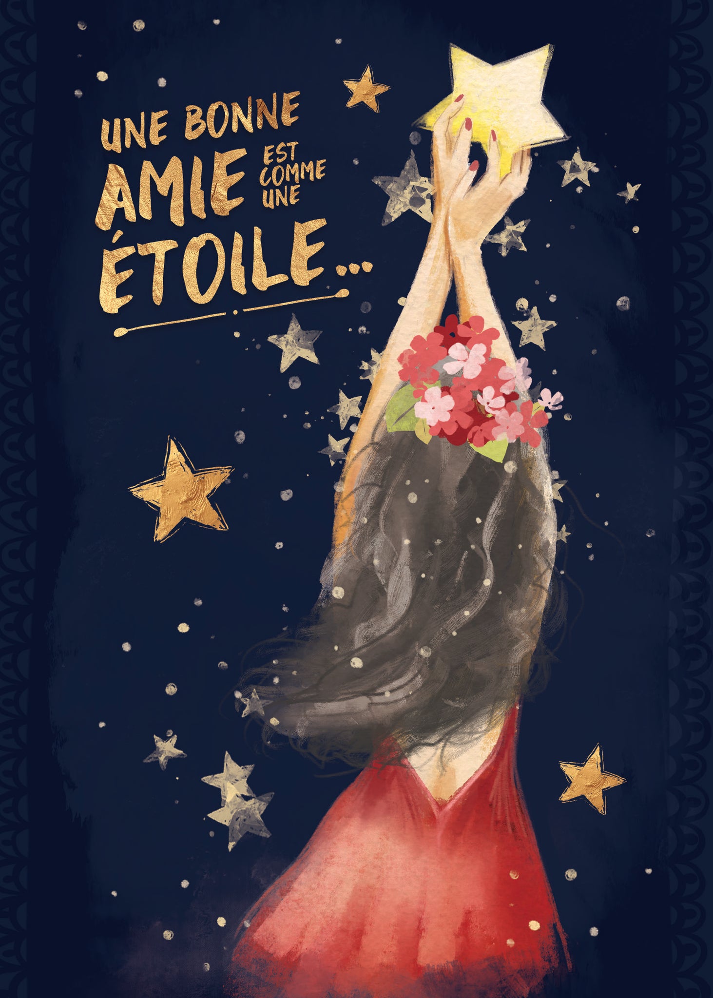Carte 5″ x 7″ imprimée sur du papier lin couleur. À l’intérieur: On ne la voit pas toujours, mais on sait qu’elle est toujours là. Imprimé au Canada.