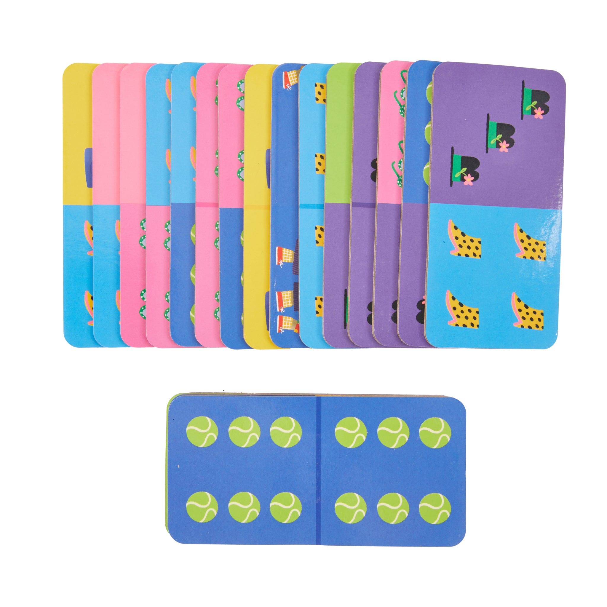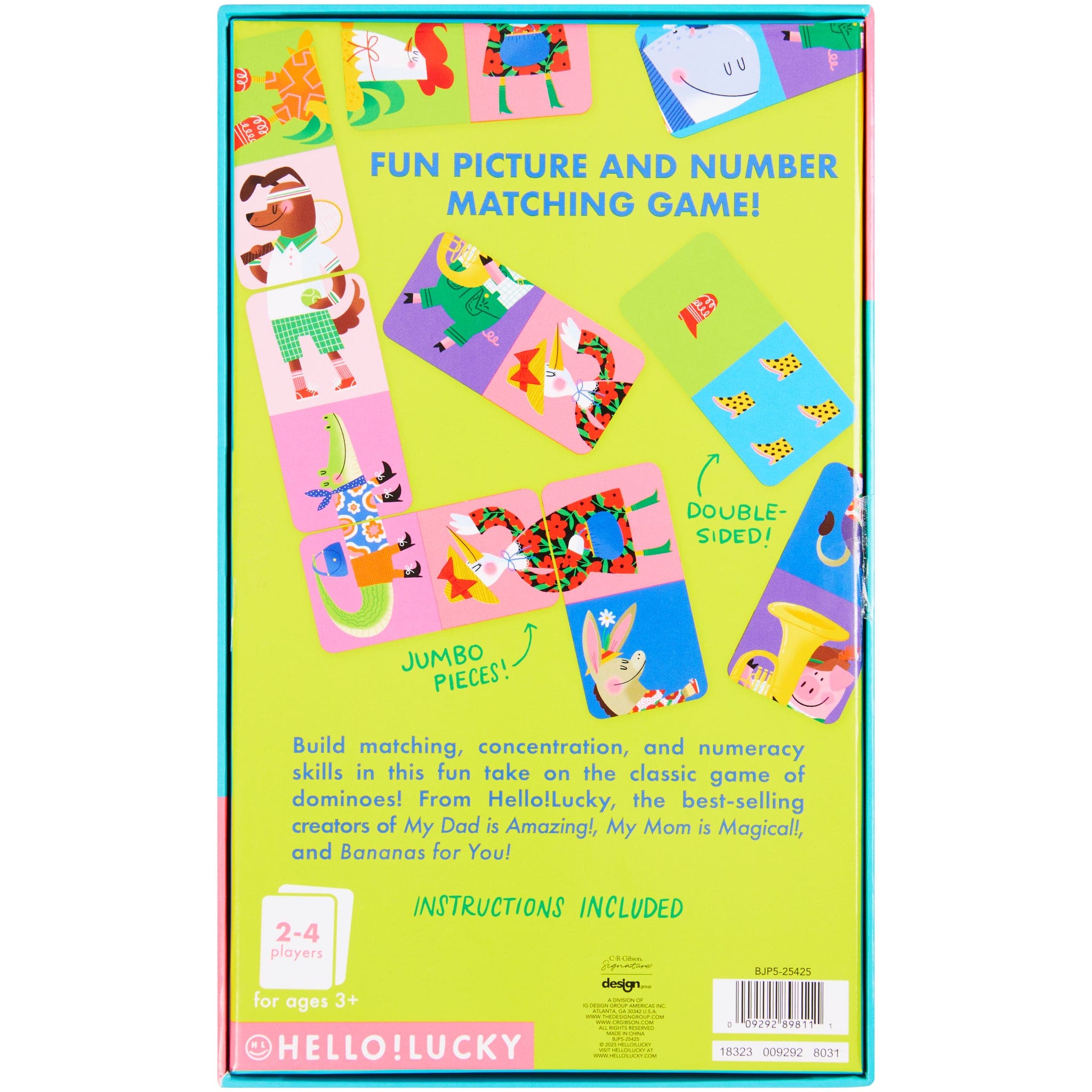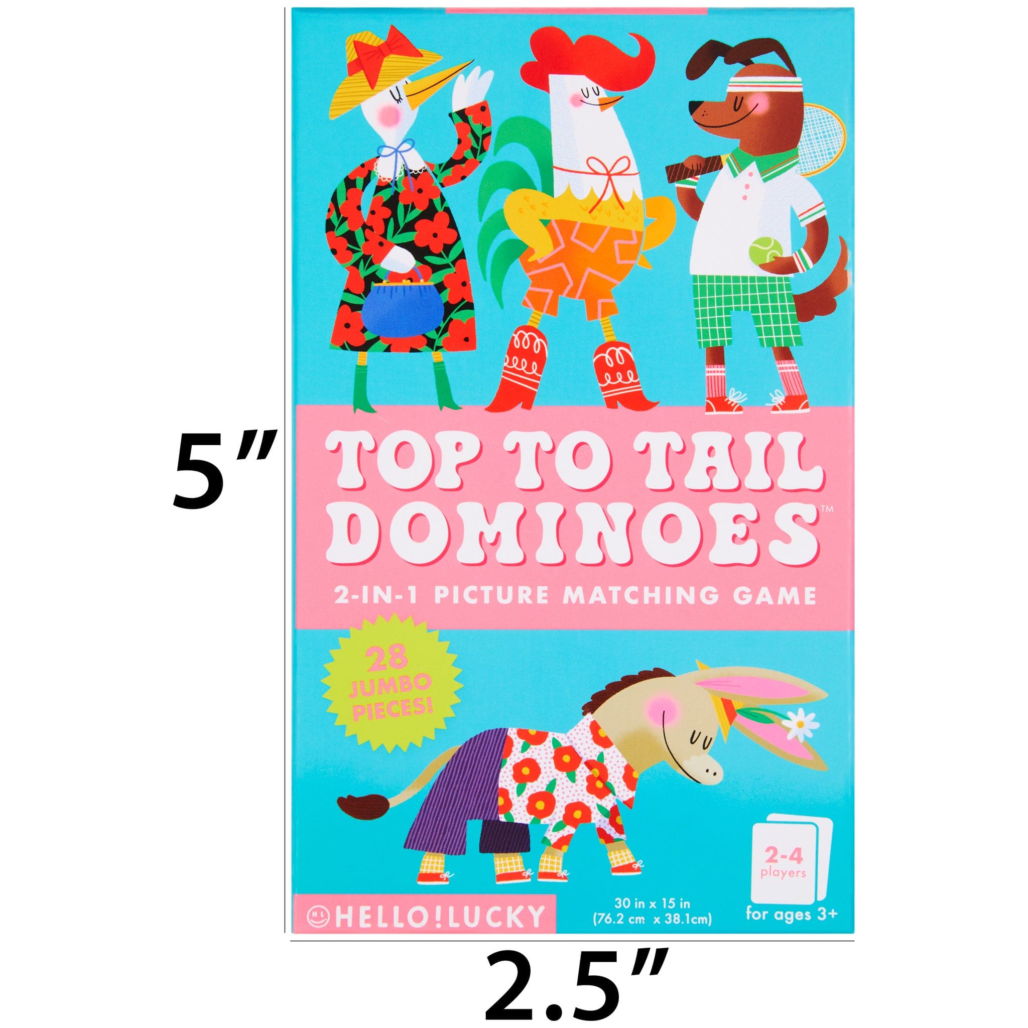 Two ways to play: flip over the tiles to play traditional dominoes! Includes 28 double-sided cards. 2-4 players. Ages 3+.