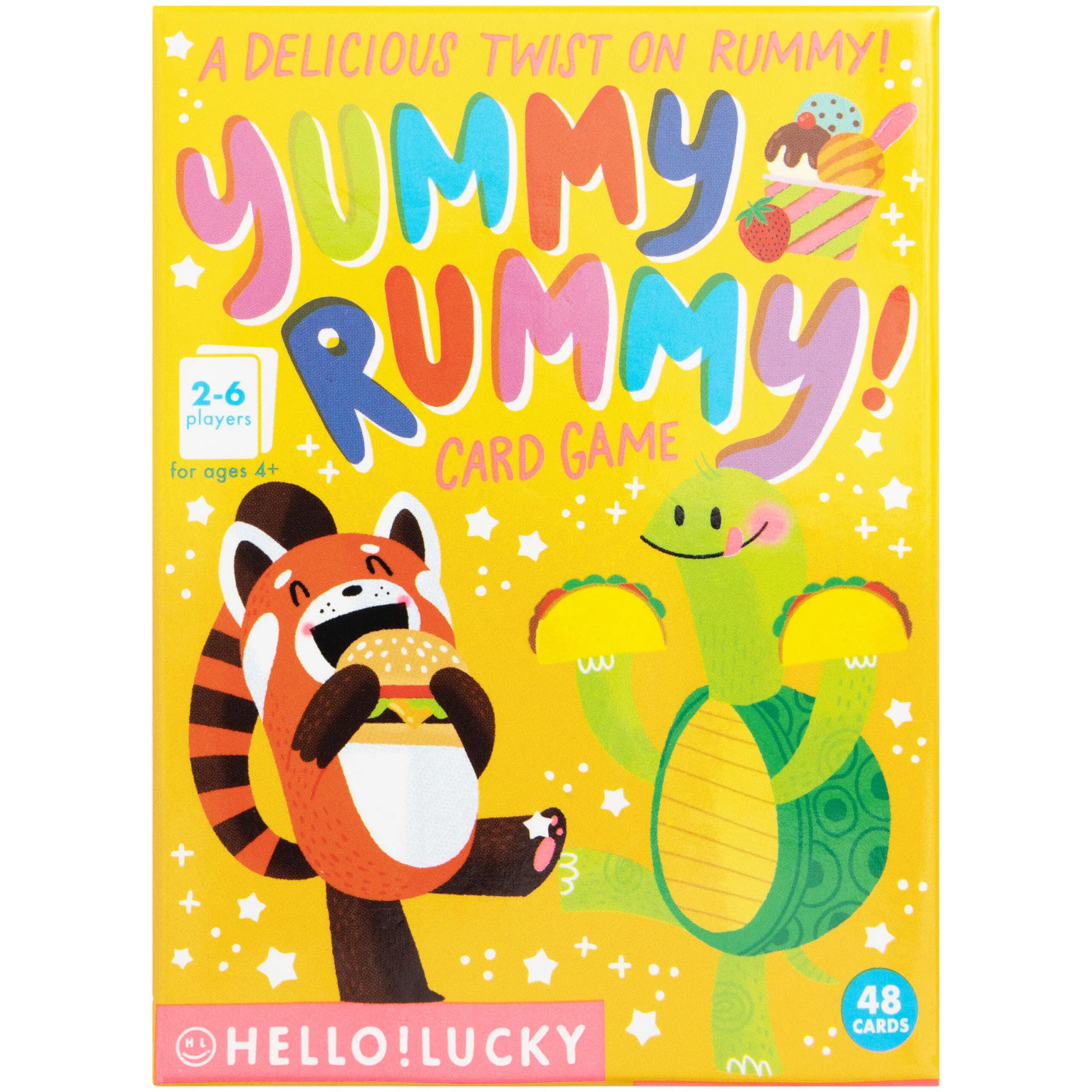 Match sets of colors, animals and/or foods with cards filled with mouthwatering treats and adorable characters that will leave you craving more. Includes 48 cards. 2- 6 players. Ages 3+.