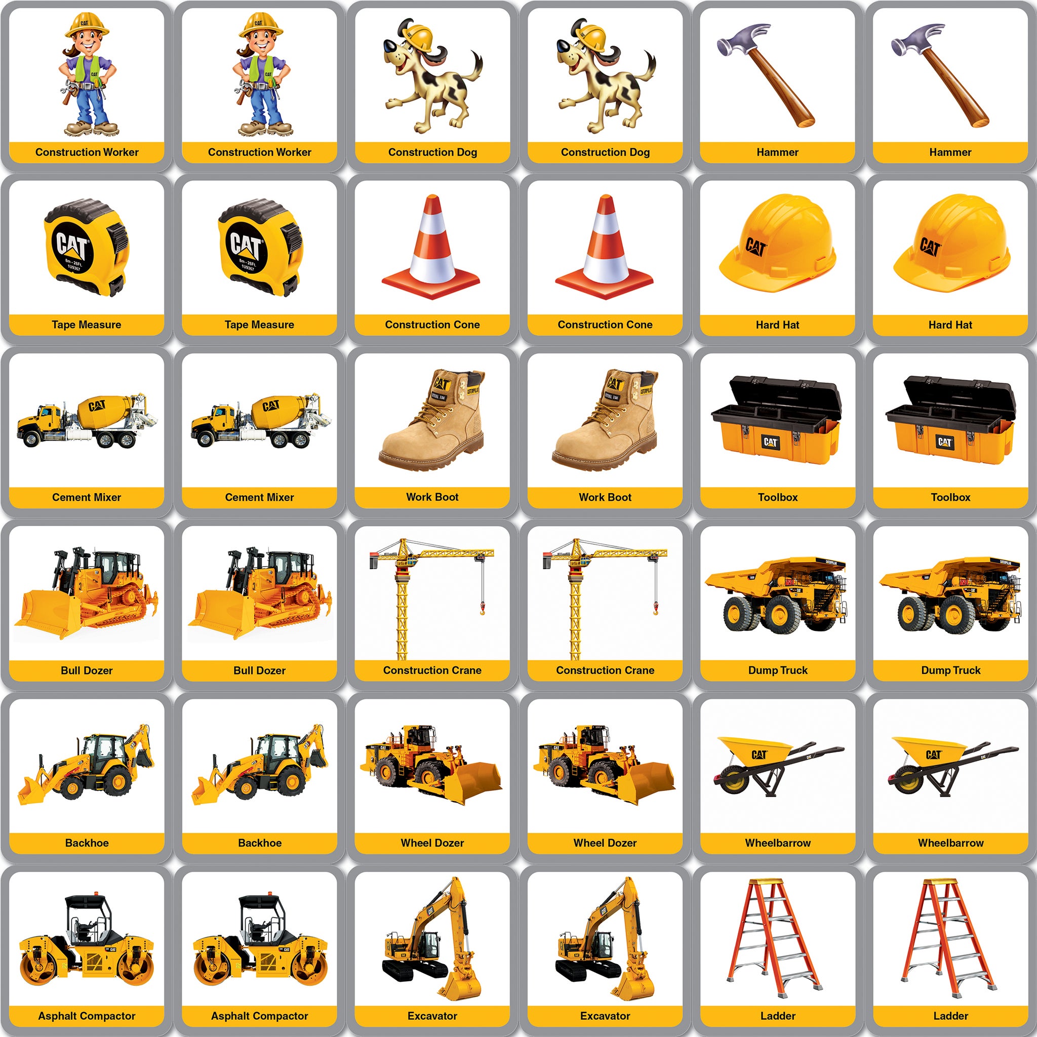 Game includes 18 matching pairs featuring Caterpillar’s biggest construction vehicles and equipment. Challenge your memory and have fun trying to find the pairs. Collect the most matches by the end of the game, and you win! For 1+ players, ages 3+.