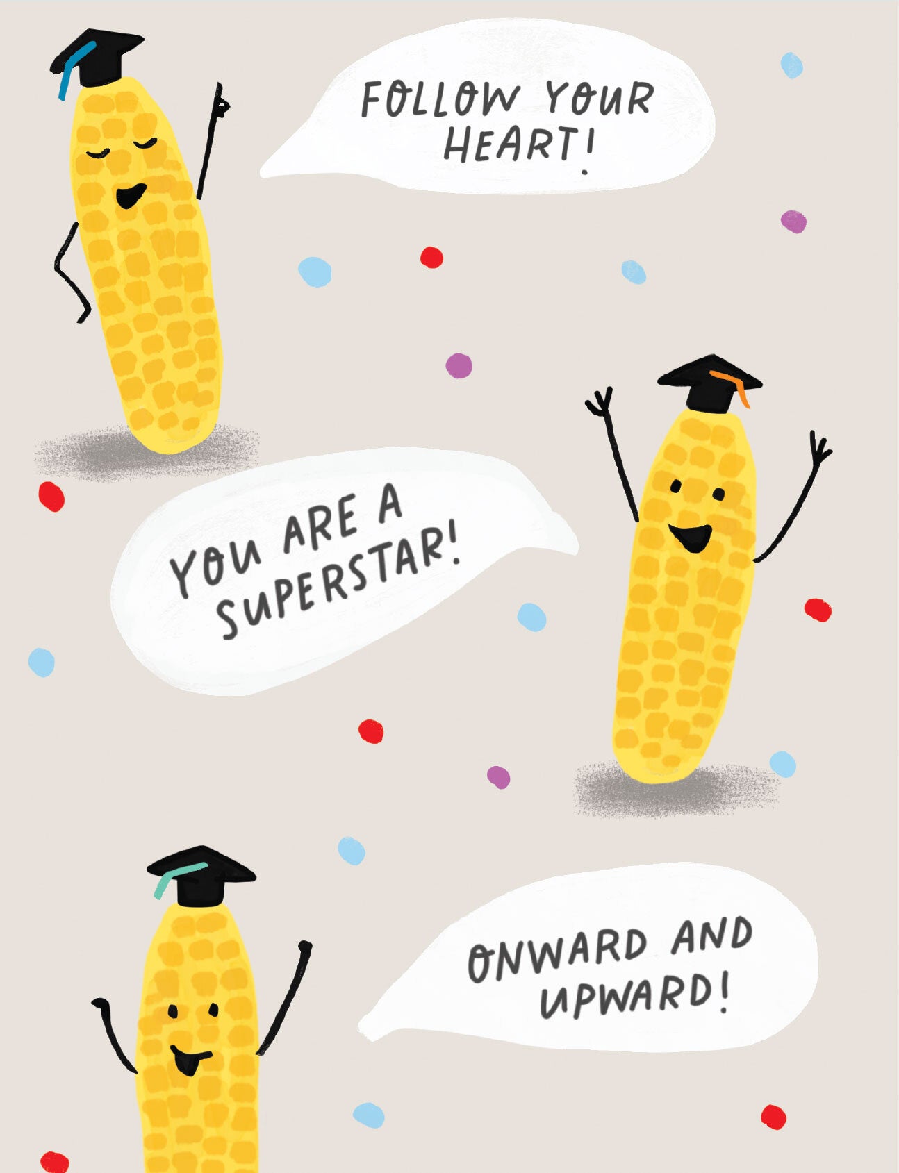4.25″ x 5.5″ Greeting card, printed on high-quality paper and complimented with kraft envelope. INSIDE: Here’s A Corny Graduation Card! Congrats! Printed in Canada.