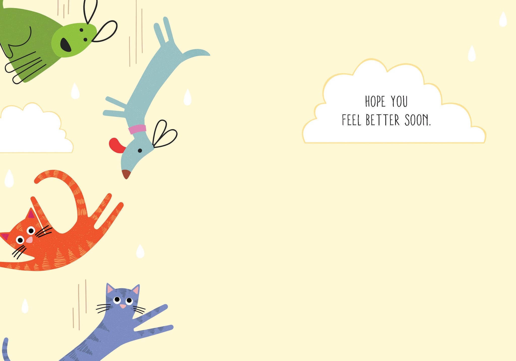 Each card measures 5″x7″ (13cmx18cm) and is printed in full colour on coated paper, comes with a coordinating colour envelope. Printed in Canada. INSIDE: Hope you feel better soon.