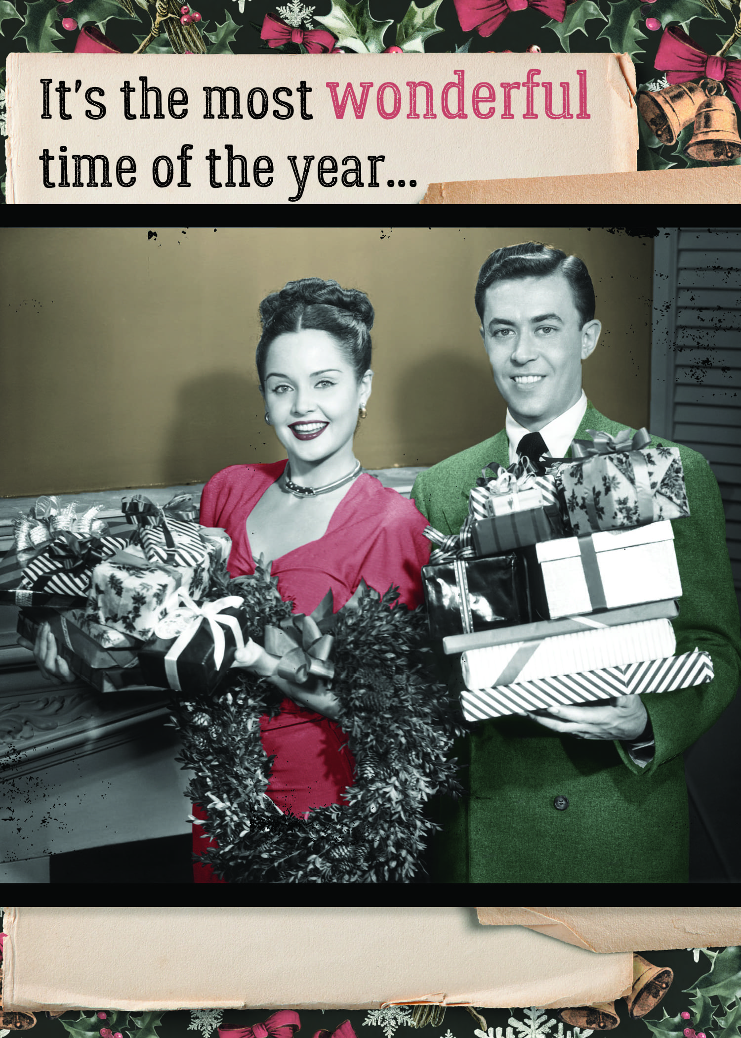 5 x7″ Card with Kraft Envelope. INSIDE: allegedly. Happy Holidays. Printed in Canada.