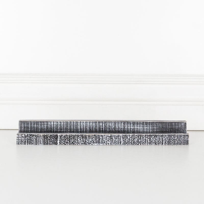 12″x 0.75″x 1 wood ledgie tile stand in black. Ledgies are another great way to display the letters and the shape sets! Letters sold seperately.