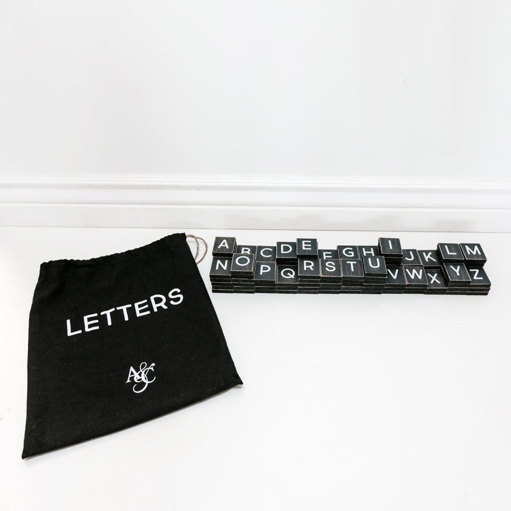 Bag of letters for letterboards in clean, crisp colors of black and white and measures 12″x 14.5 “x 0.25”. Containing 110 letters, each measuring 1.5″x 1.75″x .25″, with plenty of R’s, T’s and vowels. Letterbords sold seperately.