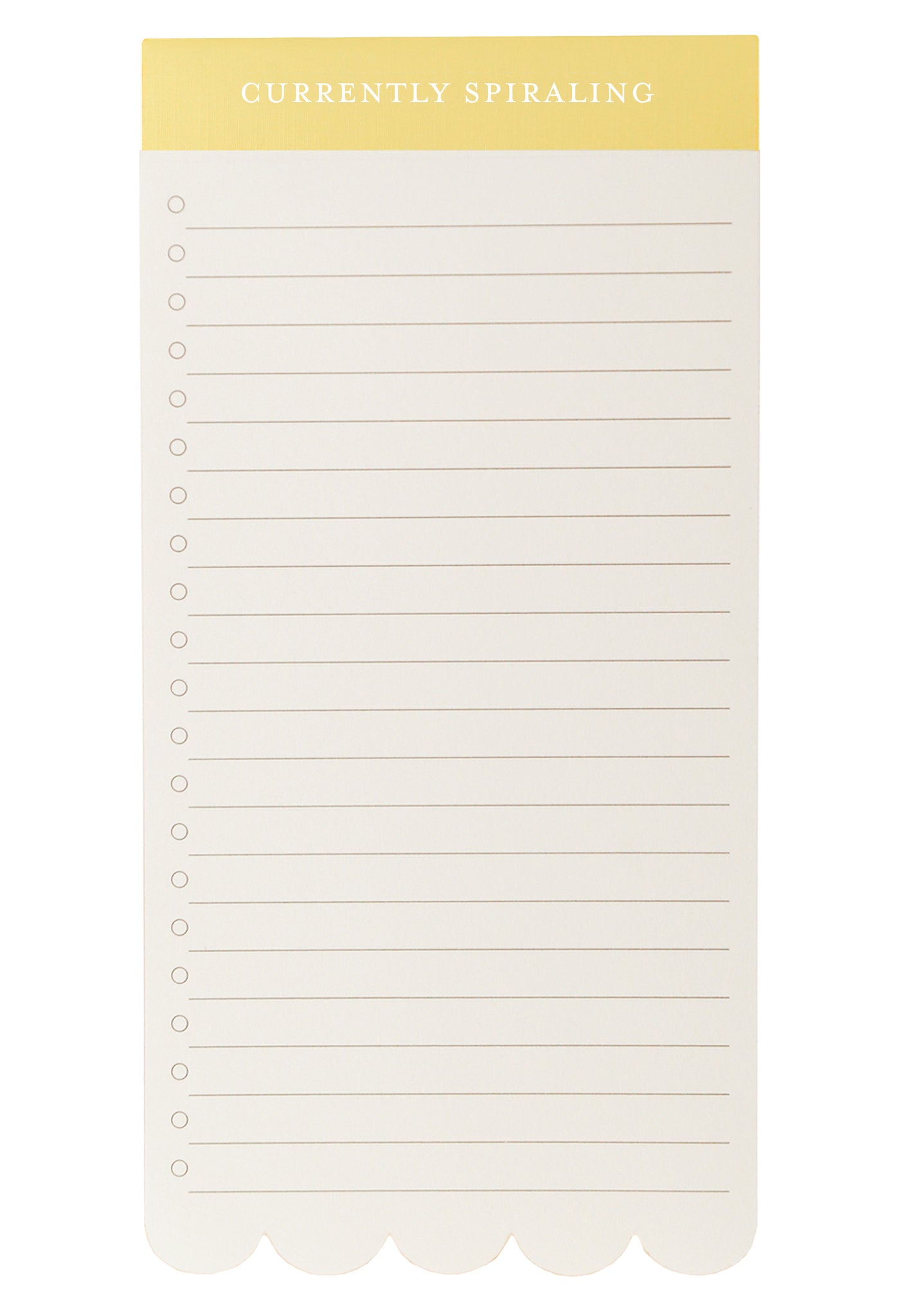Listpads include 80 perforated sheets on cream sketch paper, colour edge, and scallop diecut bottom with a textured paper top wrap. Measures 9.75″ x 4″