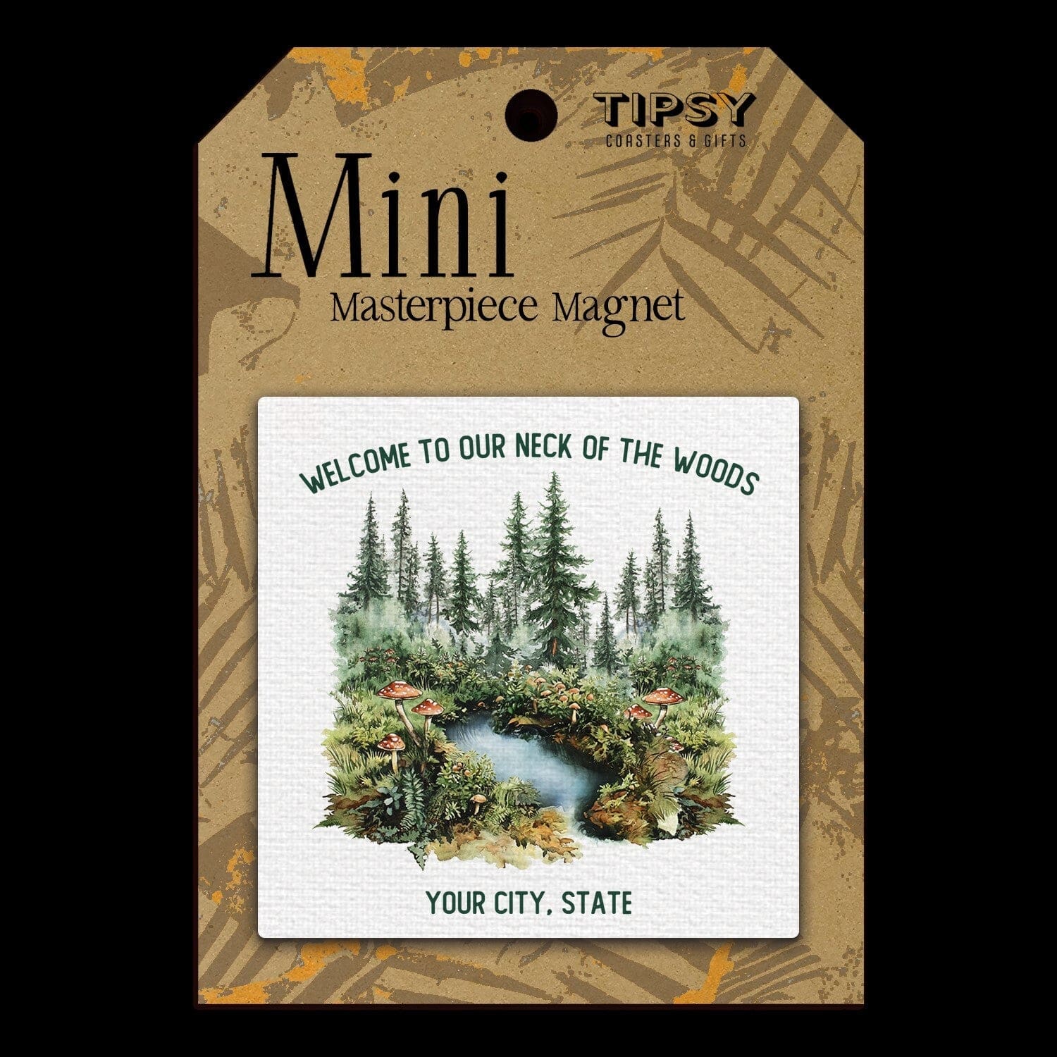 Customize with your city! Just add the city and state to your order notes. Square 2.5″ mini canvas with magnet. Makes great gift item or impulse purchase! Made in America.
