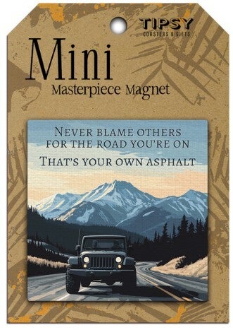 Square 2.5″ mini canvas with magnet. Designed to lift spirits and spark conversations wherever they’re placed. Makes great gift item or impulse purchase! Made in America.