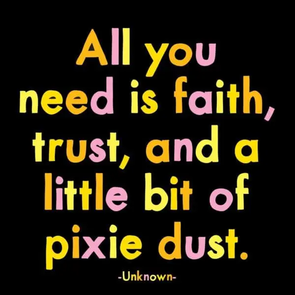3.5″ square magnets. Individually packaged in polysleeves. Printed in the USA. all you need is faith, trust, and a little bit of pixie dust.