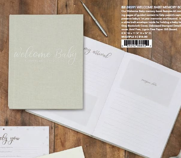 Preserve baby’s 1st year memories and beyond. Includes a white kraft envelope inside for holding a baby keepsake. Gray book cloth Cover, Debossed Stamped Detailing on cover. Acid Free, Lignin Free Paper. Gift Boxed. 8 7/8″W x 11 1/4″Hx 3/4″D