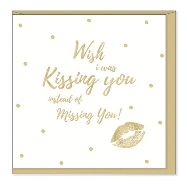 Hot Lips Cards. This 15cm x 15cm greeting card is printed on cardstock, features gold foil details and pink foil lips. Cellophane wrapped with a pearlescent gold envelope. Made in England. INSIDE: Blank