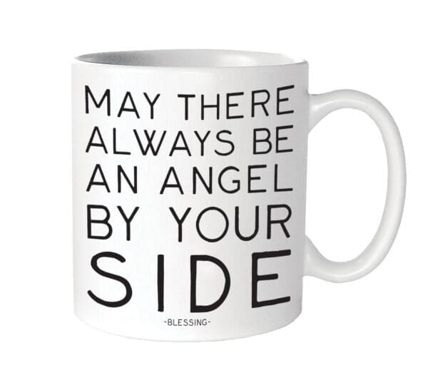 14 oz. ceramic matte finish mug. Microwave & dishwasher safe. Individually boxed.may there always be an angel by your side